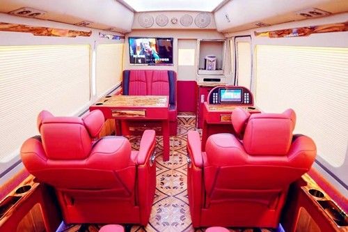 从灯光的设置上就有很多种方式,我们可以在车顶内加装豪华的彩色灯,可以有橙色蓝色紫色等不同的灯光选择,营造车内氛围。窗帘内侧可以加装LED 蓝色灯光,车内立柱加装LED灯光,在台阶上也可以镶嵌LED灯光,显示品牌坐标等。同时还可以在通道来两侧增加LED蓝色灯光。我们都知道,光是最能衬托氛围的选择,对车内灯光的改装可以带给我们独特的视觉感觉,营造出或温馨或者淡雅的乘车环境。