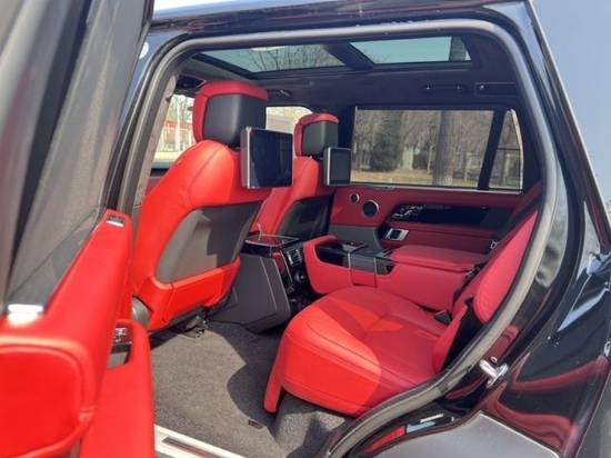 21款路虎揽胜创世加长3.0T汽油 P400 黑/红 带雷测 雷达测距配置:滑动全景天窗,电动遮阳帘,22寸钻石轮,三块液晶显示屏,10.2寸后娱,抬头显示,ACC自适应巡航(雷达测距)二代地形,300PD商务座椅,电动5座变4座,二排座椅腿托,方向盘加热,前后座椅通风加热按摩,热石按摩,飞翼头枕,360环影,智能卡,一键启动,二排车窗电动遮阳帘,电吸门,脚感电尾门,黑钢琴漆内饰,桃木方向盘,冰箱,鹿皮顶,825W高级音响,四区空调,