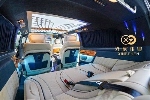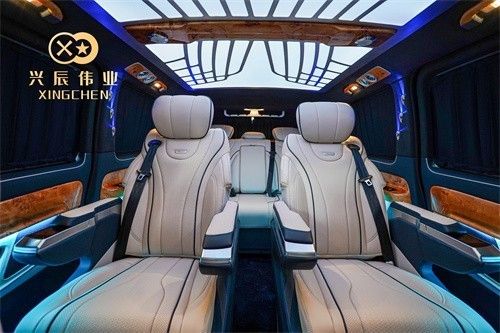 2022款奔驰威霆商务车内饰通过改装实现了满足商务接待、洽谈、出游等各种出行需求,全车真皮包覆质感十足,它的第二排的座椅也达到了飞机头等舱的标准。