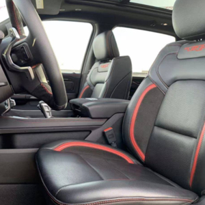 道奇公羊霸王龙座椅各自独立,配有加热等舒适功能,每个座椅独立配一个操控手柄,各项功能由乘坐者自己控制。道奇公羊皮卡车型全部座椅均采用真皮包裹,前排还配备了十分实用的运动座椅。