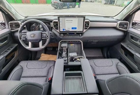 22款丰田坦途的内饰设计也采用了新设计风格,“硬”还是第一感受。无论是平直的线条还是灰白的用料配色,车内的风格都是非常偏向于越野,宽大的悬浮式液晶中控屏幕也是挺抢眼的,根据不同配置也将提供有8英寸以及14英寸的不同配置,就是这个感觉还是很像“大彩电”,只是放在这台车上会显得更协调一些,功能上也丰富了在线车联网以及CarPlay车机互联功能。