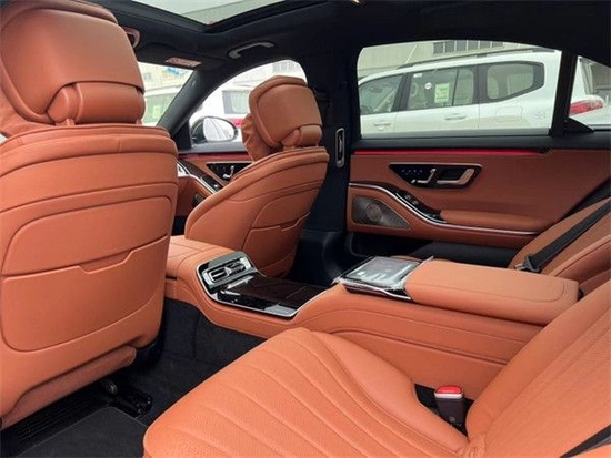 一直以来,奔驰在内饰营造感上面颇有“建树”,作为奔驰家族当中的高端车型,22款奔驰S450自然而然地继承了家族优秀基因,中控区域超大尺寸的液晶触摸屏,集成了众多功能于一体,大面积皮革材质的包裹,氛围灯的营造,加以镀铬的点缀,以及木纹饰板的装饰,使其整体内饰氛围给人感觉就是两个字“奢华”。