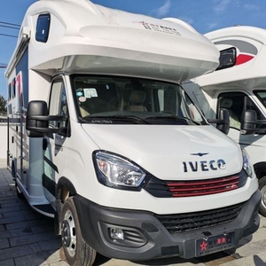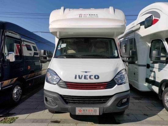 这款房车是基于依维柯欧胜 (配置|询价)全新底盘打造,具有更加良好的稳定性以及安全性。从外观来看,这款房车圆润饱满的大额头设计,方正霸气的车身,在配上橘色拉花彩条的装饰,动感十足,让人心生爱意。本车的车身尺寸为5990*2310*3150mm,轴距3300mm,可以上蓝牌,有C本的朋友就可以驾驶。车身外部还配有储物仓,10公斤燃气罐,市电接口,注水口,电动上车踏板,驻车支腿,以及3米遮阳棚等设施,为乘客提供便利。