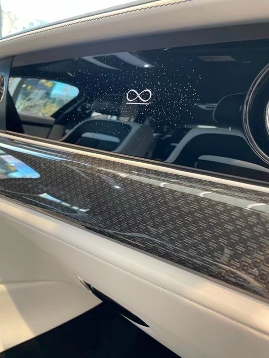 22款劳斯莱斯古斯特功能区域布局在原基础上加入了全新的设计,仪表盘、中控屏以及副驾前方的星光饰板形成了贯穿式设计。新车在副驾驶前方的星光饰板,以850颗星星环绕散发亮光的“Ghost”车名,只有在车辆启动时,发光的星簇及字标才全然可见。这背后是152支LED灯源、每个2毫米的光导以及90000余个激光蚀刻点才能产生的闪烁效果,从而呼应新车配备的全新流星车顶。