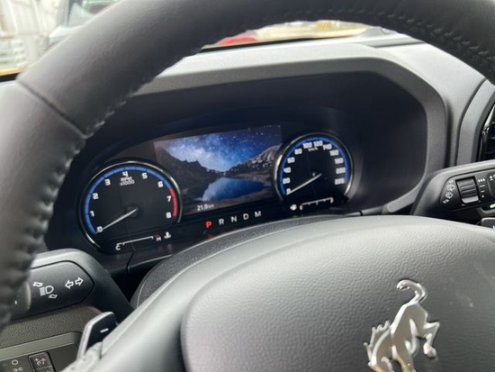 22款福特烈马Bronco车内采用硬朗的设计风格,中控台设计主次分明且有层次感,用料也厚实,多功能方向盘造型运动,中控屏幕采用内嵌式的设计增添了车内的时尚感,按键布局合理,档把设计精致,座椅宽大厚实,空间宽敞,实用性强。