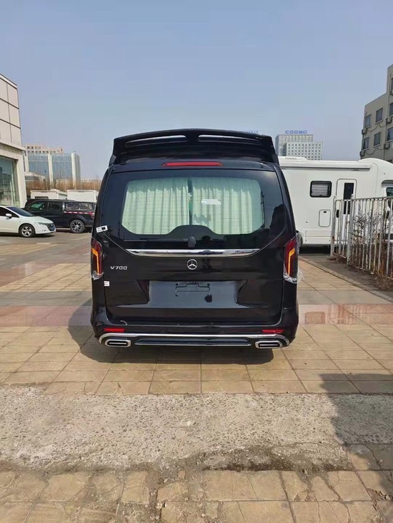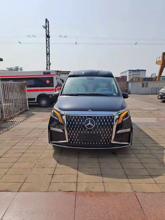 整车前脸包围一如既往,选用奔驰V250同款包围套件,使整车轮毂更加精致优雅减少了商务车敦实笨重的形象,中网采用镀铬式的直瀑设计,点缀的很恰当。
