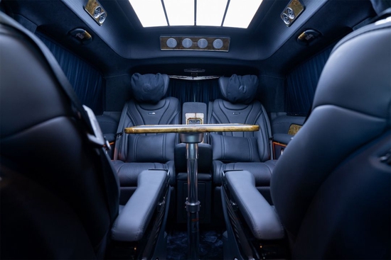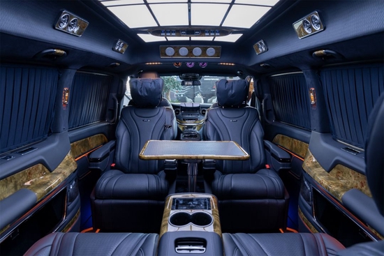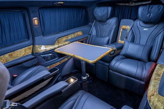 2022款奔驰圣姆峰MH7全车地毯及窗帘均采用了进口羊绒材质,尽显尊贵。配备电动窗帘,一键开启,一键关闭。侧壁220伏电源以及储物格外加无线充电,方便了乘坐者,此外,侧壁镶嵌的镀铬亮条装饰,亮点更加突出。