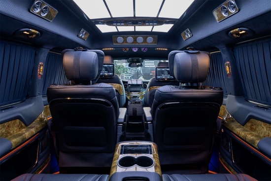 2022款奔驰圣姆峰MH7定制迈巴赫式水晶萤石九宫格顶灯,质感晶莹剔透,通过镶嵌式总控进行控制,多色可调式氛围灯,可让后舱根据需求转变成不同的场景,周边还有定制手感漆拉手及出风口。