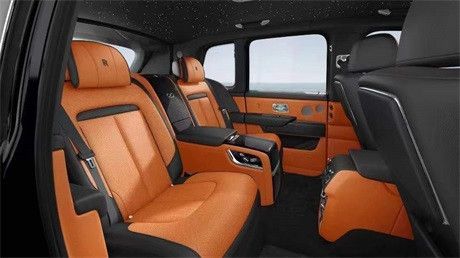 劳斯莱斯库里南座椅设计彰显劳斯莱斯汽车的品质与工艺,简洁而现代的马蹄铁图案,强调座椅的支撑力。整体椅背由一整张皮料精心塑形,打造出极为立体的表面。后排两个独立座椅之间设有后排中央固定扶手,可容纳带有劳斯莱斯威士忌酒具的酒柜、香槟酒具和冷藏箱,为后排乘客带来旅途中的终极享受。