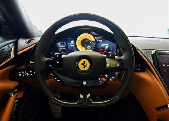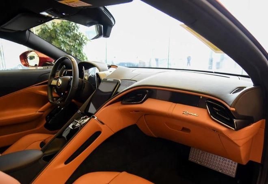 法拉利Roma (配置|询价)(现车)配置:带有空气通风性的全电动座椅,翼子板上带有法拉利车队徽标,20英寸哑光灰色Corsa轮毂,黄色制动钳,黑色运动排气管,彩色安全带,头枕上的刺绣跃马标志,碳纤维方向盘及LED,后部驻车摄像头,滑雪舱口.