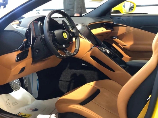 如果说外观上的科技感难免流于表面,车内的改头换面似乎更符合法拉利放眼未来的决心。在这里,双座舱布局归功于经优化的车内空间,滚边处理尤为醒目。置身环绕式座舱中,座舱由仪表盘一路延伸至后排座椅,令仪表盘、车门、后排座椅与通道和谐贯通。