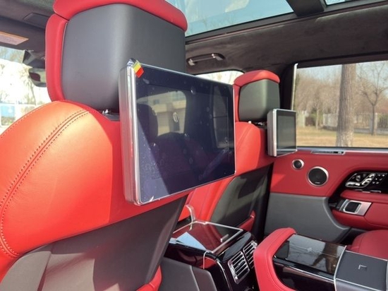 21款路虎揽胜创世加长3.0T汽油 P400 黑/红 带雷测 雷达测距配置:滑动全景天窗,电动遮阳帘,22寸钻石轮,三块液晶显示屏,10.2寸后娱,抬头显示,ACC自适应巡航(雷达测距)二代地形,300PD商务座椅,电动5座变4座,二排座椅腿托,方向盘加热,前后座椅通风加热按摩,热石按摩,飞翼头枕,360环影,智能卡,一键启动,二排车窗电动遮阳帘,电吸门,脚感电尾门,黑钢琴漆内饰,桃木方向盘,冰箱,鹿皮顶,825W高级音响,四区空调,