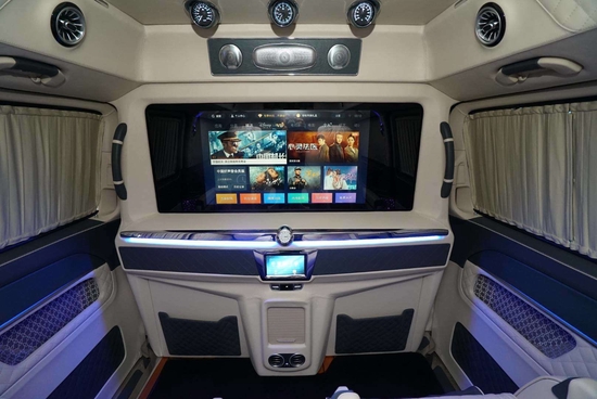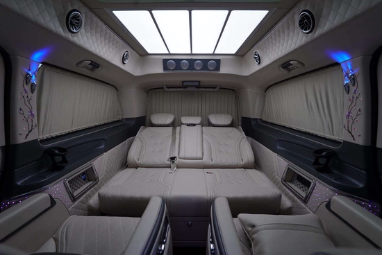 奔驰迈巴赫VS680凭借行政座椅,前排乘客侧的后排乘客即使在长途行车中也能够完全放松。仅需按下一个按钮,便可将座椅设置到舒适的角度,最大倾斜角度为 43.5 度。一个附加的伸出式腿部支撑进一步增强了舒适性。