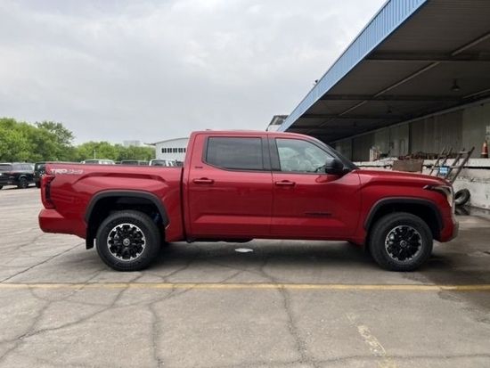 2022款丰田坦途直接提供了有棱有角的车头前脸,大尺寸蜂窝状进气中网搭配镀铬边框处理,两侧泪痕造型LED矩阵大灯视觉效果并不输给福特猛禽 (配置|询价)(配置|询价)。车身侧面看也有了方盒子外观效果,甚至还要熏黑车窗立柱营造出悬浮车顶。黑武士改装风格轮毂搭配原厂越野轮胎,素车就能够实现不错的越野通过性。