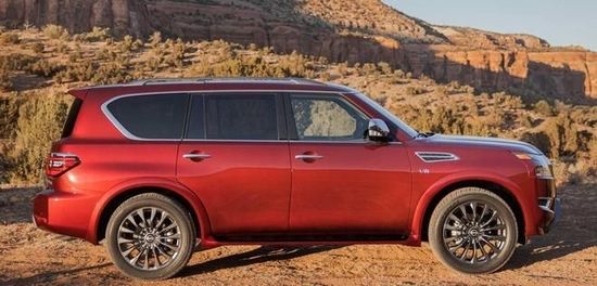 侧面造型方正稳重,平直的腰线将整车的尺寸以及气势很好的表达出来。车身尺寸方面,美版途乐长宽高分别为5165/1995/1940mm,轴距达到3075mm,加上273mm的离地间隙,看上去十分高大威猛。在轮毂尺寸方面,新款ARMADA将会提供20英寸以及22英寸的多个款式可选。