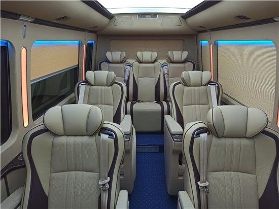 丰田考斯特改装商务车10座在内饰的设计上已经说过有很多不同风格的设计方案,丰田考斯特改装商务车10座作为移动的办公室来说,充分可满足了我们对于商务旅行以及商务办公的需要。舒适的座椅,可旋转的豪华首长席座椅,配备高档的办公桌,车内车载冰箱为我们的旅行提供方便,作为移动的办公室我们还可以安装文件柜,保存商务出行时所需的资料。