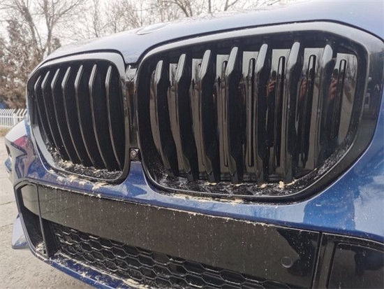 2022款宝马X5外形做了大幅度的改动,中网依旧采用了经典的双肾造型,但是尺寸更为夸张几乎占了大部分的前脸空间,霸气凶悍,并且进气格栅的周围采用更为粗壮的线条进行勾勒,最大的改变就是下颚的变化,熏黑的中网造型,造型棱角分明,极具力量感。