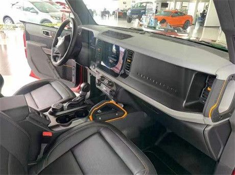 22款福特烈马Bronco车内采用硬朗的设计风格,中控台设计主次分明且有层次感,用料也厚实,多功能方向盘造型运动,中控屏幕采用内嵌式的设计增添了车内的时尚感,按键布局合理,档把设计精致,座椅宽大厚实,空间宽敞,实用性强。