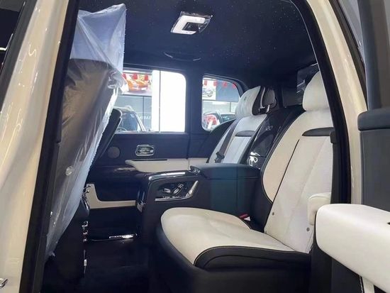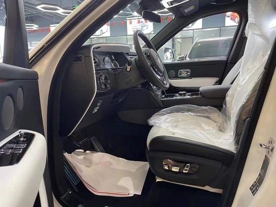 22款劳斯莱斯库里南的内饰遵循了劳斯莱斯一贯的设计风格,造型经典复古但不失科技感,大量实木饰板的采用,提升了内饰的档次感。而大面积真皮包裹的设计,则成功的营造出奢华舒适的内饰氛围。仪表盘的设计较为古朴,内部指针清晰可见,外圈还配备有劳斯莱斯珠宝般的装饰环。方向盘沿用了经典的三辐式造型,但是整体设计更加小巧、厚实,并且内部包裹有可加热的柔软材质。
