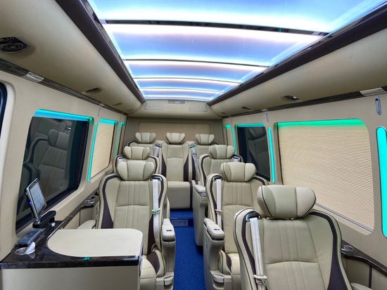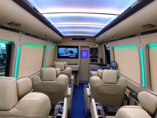 丰田考斯特10座在窗帘以及座椅的改装上注重和内饰风格的完美融合,百褶窗帘搭配上豪华的游艇木地毯,整体的端庄展现出丰田考斯特的大方气质。豪华的布艺窗帘配备上红色的通道地毯,温馨的内饰带给我们更多的与众不同之感。而丰田考斯特10座在内饰的灯光上增加多种色彩设计,航空顶灯营造出不同的氛围设计,内饰的多样色彩成就了丰田考斯10座的完美舒适。