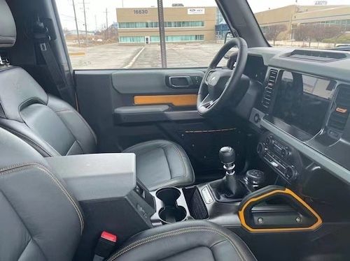 从这辆车的配置上可见它有前后桥锁,防倾杆断开设计,车门采用无框设计,车顶可拆卸,防滚车架,防脱圈的原厂高品质轮毂,悬架间隙较高,315MT泥地胎,全地形反馈系统,越野车标配,车灯虽说像坦克300 (配置|询价)不过它的车灯更高级,LED转向随动大灯 ,车门上有福特最经典的密码锁,无钥匙进入,车内还有10个扬声器,B&O音响系统,品质很高。