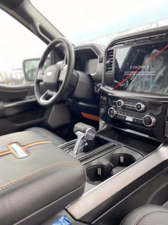 福特F150它的表面颇具动感,内饰奢华,配置富厚,同时兼具跑车的动力机能、的全地形制霸本领和豪华轿车的乘坐恬静性,并且它的改装空间也很大。车内配备标准独特的皮革和布艺装饰的座椅,驾驶员侧的电动十向调节这些座椅同时具备记忆功能。中央控制区搭配了触控式显示屏,其下方则是多媒体控制区及空调面板,采用旋钮+物键的组合。中控功能区域可分为三个小控制区,最上端为音响控制及导航控制,中间为收音机调节控制,端为空调及座椅加热控制。在内部空间的庞大基础上,福特也提供了非常具有舒适性与服务性的内饰配置。另外,新车还配备了一块大尺寸的全景天窗。