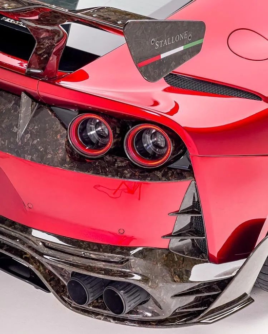 从F50之后,法拉利很长一段时间未再对旗下超跑安装过独立尾翼,但艺高胆大的MANSORY迈莎锐却敢于突破传统。锻造花碳开模设计的性能尾翼不仅让812尾部更显动感立体,还呈递出摄人心魄的热血竞速豪情;加之碳纤维重制的后保险杠、后置扩散器、尾灯罩、后扰流等宽体套件点缀修饰,仿佛下一秒MANSORY 812 Stallone的轰鸣声浪便会呼啸而出!