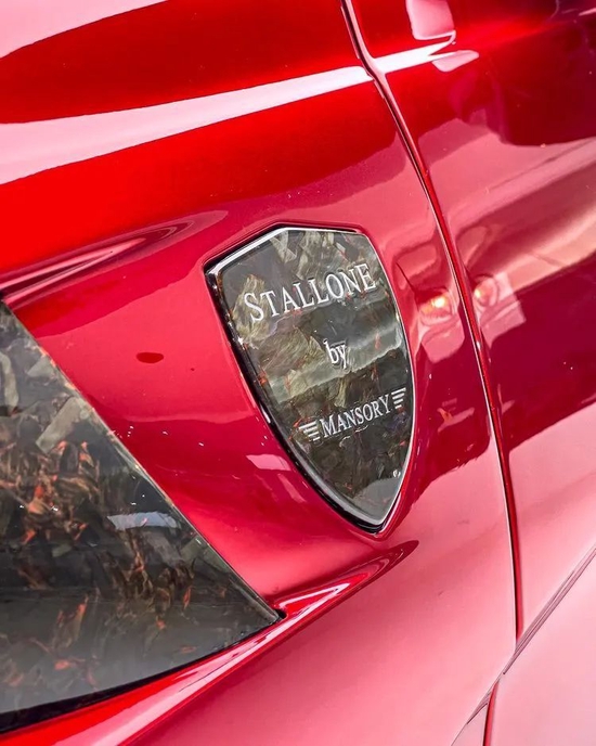 同级锻造碳打磨而成的翼子板盾标神采飞扬,上面印刻的“STALLONE by MANSORY”完美凸显出此款812的尊贵血统和非凡个性。