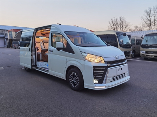 丰田海狮九座比奔驰V级 还奢华,海狮是丰田品牌旗下的一款经典MPV产品,他的空间更大,真实定位水平并不输于丰田埃尔法 (配置|询价),丰田海狮-HIACE这个车定位是在丰田考斯特 (配置|询价)和奔驰V级之间的中型车,海狮-HIACE在细分市场里面完全没有对手,丰田海狮-HIACE这车座位6-13座都有,他的6-9座是上蓝牌的,他将会是进口市场上的绝对主力。企业单位,因为他外观低调、空间宽敞、可靠性高、极低故障率、改装潜力大等众多优点,这是那些仿品无法比拟的比如(金杯海狮 、福田海狮)。新款进口丰田海狮前脸设计,车身线条,都令他散发无尽魅力。车身骨架新增加强力防撞杆,设计独特而严谨的撞击安全结构能够减轻及分散撞击力。购车热线:156-1177-3535 同微信 翟经理