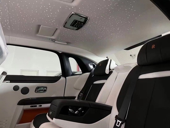 22款劳斯莱斯古斯特功能区域布局在原基础上加入了全新的设计,仪表盘、中控屏以及副驾前方的星光饰板形成了贯穿式设计。新车在副驾驶前方的星光饰板,以850颗星星环绕散发亮光的“Ghost”车名,只有在车辆启动时,发光的星簇及字标才全然可见。这背后是152支LED灯源、每个2毫米的光导以及90000余个激光蚀刻点才能产生的闪烁效果,从而呼应新车配备的全新流星车顶。