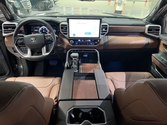 新款丰田坦途3.5TT的五个小仪表给出了司机应该注意的技术参数,转速表、时速表、油量表、水温表、电池/机油表依次排列,数据显示清晰明了,中控台科技感十足,三辐方向盘延续了家族设计理念, 金属、木材、皮革等多材料营造了相当豪华的视觉感受,丰田坦途内饰简洁大方依旧突出了实用特点,室内色彩的精致搭配,让整个内部空间既充满质感又倍感时尚。