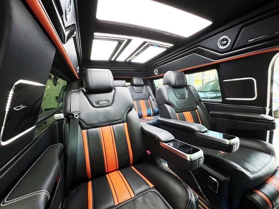 福特勇猛者2021新款配置,福特猛禽改装七座商务价格。福特勇猛者全车隔音、隔热、降噪处理,采用“2+2+3”经典七座布局,二排配备了飞机头等舱级的航空电动按摩椅,控制模块设置在车侧壁两边,用以调节座椅的:通风加热、气动按摩、腿托升降、前后移动等多项功能;三排可一键放平形成一张宽大的沙发床,供旅途疲累的宾客躺卧休眠;电动全景天窗带来豁达通明的极佳视野。