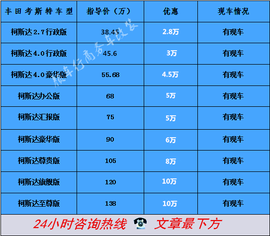 丰田考斯特4S店销售电话:130 1114 5577 (同微信)