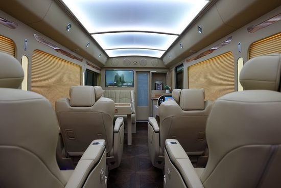 以米色为主色调再加上檀木的点缀,沉稳大气更适合商务接待。座椅采用进口埃尔法座椅,人体工程学设计,舒适度可想而知,通风加热靠背腿托等功能。a380空客顶分为商务模式娱乐模式,氛围灯光随心而变。