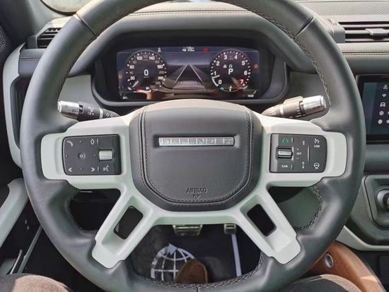 2022款路虎卫士 (配置|询价)110四门配置:前排座椅12向电动可调、加热、具有记忆功能和2向手动可调式头枕,20英寸5辐亮光银色轮毂,牡蛎色内顶,矩阵式LED大灯,滑动全景天窗,黑撞顶,黑耀包,隐私玻璃,电动拖车钩,拖车辅助,3区空调,空气质量传感器,空气净化,2代地形,多功能真皮加热方向盘,电动调节,主动紧急刹车,盲点辅助,3D环影,开门时出现盲点警告系统,注意力监测,车道保持辅助,360停车辅助,倒车时碰撞预警系统,涉水感应,流媒体内后视镜,无钥匙进入,12.3寸TFT仪表显示器,英国之宝音响(400W),前冰箱,环境照明,全尺寸备胎。