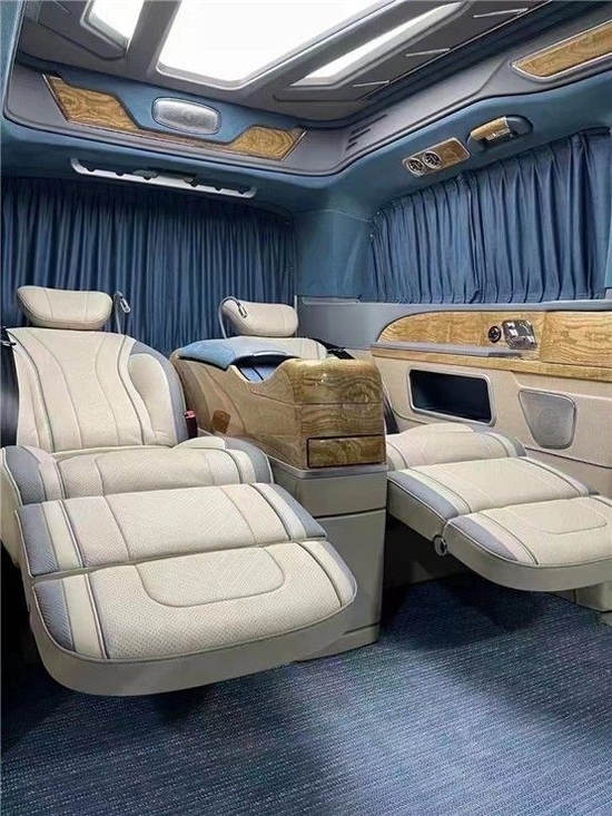 豪客V600四座商务车简直不要太奢华,豪客V600商务车是集商务贵宾、郊游、办公娱乐于一体的高端MPV,外观顺畅的车身流线搭配高顶设计,摆脱了传统商务车的笨拙,使奔驰V260L看起来十分的稳重大气,内饰通过改装实现了满足商务接待、洽谈、出游等各种出行需求。