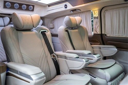 驾驶舱的门壁仪表台都用了皮质的包袱、大面积桃木装饰搭配奔驰悬浮式中控设计更具豪华高贵感、扶手中央配备了车载冰箱装下五六听可乐、在车上就能实现冰饮自由