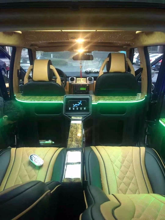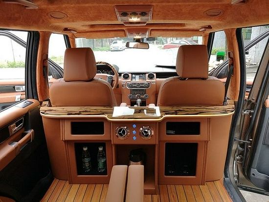 路虎发现 (配置|询价)第四代改装内饰升级航空座椅报价及发现4改装方案大全、路虎发现4代改装4座版本空间更大更舒适更豪华、路虎发现4改装木地板、豪华吧台、个性顶灯、全车包皮等。