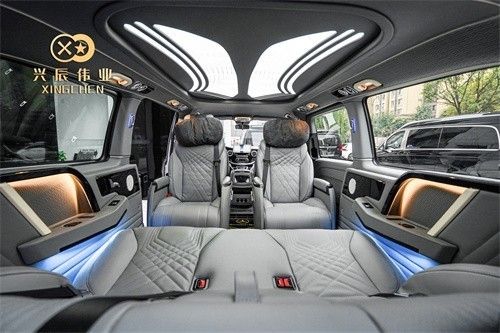 前脸采用迈巴赫同款包围设计,沉稳又霸气。奔驰平标加上镀铬饰条的装饰让整个车的线条感和流畅感更加强烈!