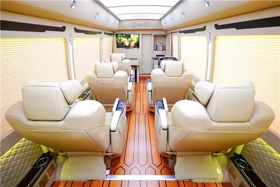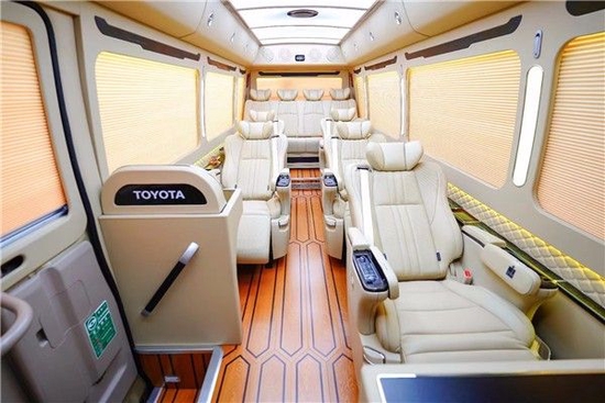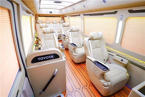 丰田COASTER柯斯达 (配置|询价)超VIP至尊高端定制版版这款车型定员规格为11座,却定制配备了全亚洲最好的航空座椅(日本原装进口),全车包括正副驾驶员德国公牛打孔皮真皮座椅、欧洲精致缝制工艺,2张OTTOMAN豪华航空椅、5张VX单人航空椅、1张双人豪华商务座椅。