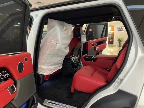 配置:22款路虎揽胜创世加长3.0T汽油 P400 黑耀版 白/红 单选:黑撞顶 雷达测距 360环影 一把半钥匙,配置:滑动全景天窗,电动遮阳帘,22寸钻石轮,黑耀套件,三块液晶显示屏,10.2寸后娱,抬头显示,ACC自适应巡航 雷达测距,二代地形,300PD商务座椅,电动5座变4座,二排座椅腿托,方向盘加热,前后座椅通风加热按摩,热石按摩,飞翼头枕,360环影,智能卡,一键启动,二排车窗电动遮阳帘,电吸门,脚感电尾门,黑钢琴漆内饰,桃木方向盘,冰箱,鹿皮顶,825W高级音响,四区空调,