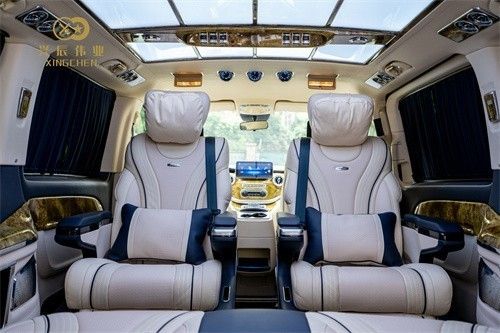 奔驰V260L改装平顶七座圣母峰版商务车侧壁及包覆部分,顶部包覆采用日本东丽的顶级埃尔坎塔拉,一般用于超跑和劳斯,宾利内饰上,商务车首次合作运用,您可以感受一下,做工和缝线极其精细,材质更加环保,麂皮绒材质可降低外界带来的风噪声,可吸音降噪,冬天保暖,夏天隔热。