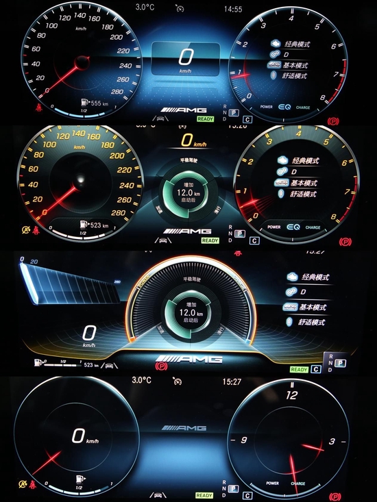 全液晶的仪表盘共有四种主题模式,我相信总有一种合你的心意。同时,你能见到的所有模块和表盘,都是可以随意进行替换和更改的。就算你想要极致的奢华,奔驰也可以把左侧的时速表换成一块巨大的钟表,不得不说真的很强。