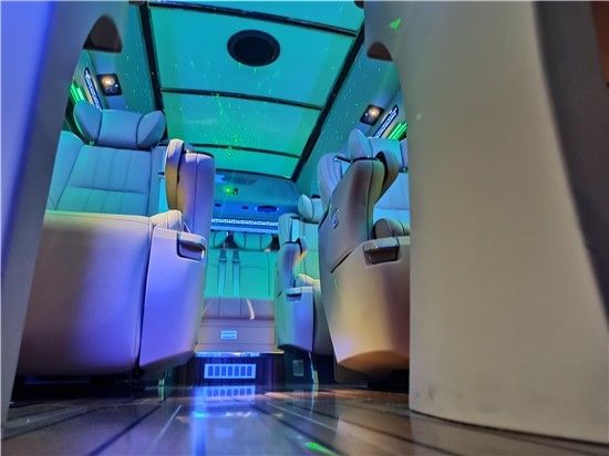丰田考斯特12座改装商务车,除了座椅的改装以外,车内隔断的增加也是别有一番风味的,隔断的增加,将驾驶席和乘客席分开而设,同时我们可以在隔断上增加一些精美的装置,电子时钟,或者显示屏,方便有使用。隔断的效果最主要还是分离了司机和乘客,既能够给司机一个安静的驾驶环境,同样也为乘驾人员提供了更加静谧的乘车空间。