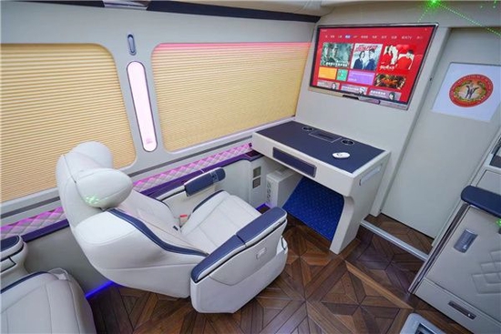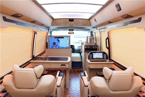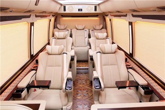 从内饰的设计上来说,丰田考斯特改装商务车有着极其丰富的内饰配置。内饰的色彩搭配也是展现出一种独特的舒适和尊贵之感。车内座椅的设计上,丰田考斯特改装商务车的设计注重舒适,真皮座椅,航空座椅,360度可旋转的航空首长席,以及原装进口的埃尔法 (配置|询价)座椅,并且配备有通风加热以及电动脚托的贴心设置,为我们的乘车旅行提供更加舒适的环境。