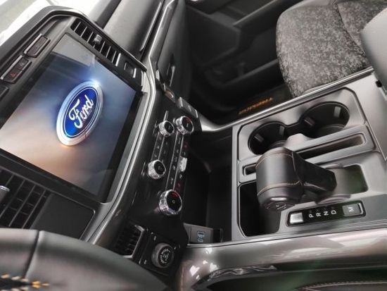 2021款福特F150XLT中控区域布局清晰合理,大尺寸的液晶显示屏提升了其科技感,多功能方向盘,给人一种强烈的驾驶冲动,大面积皮革材质的包裹,加上镀铬装饰的点缀,从而营造出了一种舒适豪华的内饰氛围。