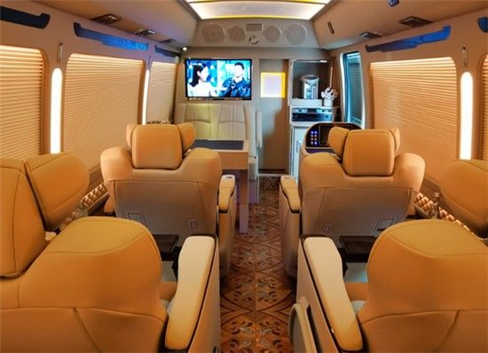 丰田考斯特政企接待版布局和加装配置,这个版型的中巴商务车算是最热销的车型,车内既能乘坐很多人,配置方面也可以加装一些办公常用的东西。车内还可以加装一个可旋转豪华独立首长座椅,豪华办公桌也是必不可少的,19寸吸顶电视搭配5.1声道系统最合适不过了。