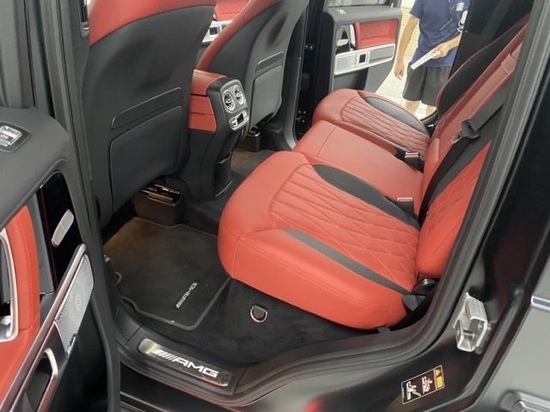 方方正正的侧面造型,使腰部线条更加的硬朗有力,这台车配备了22寸的AMG轮毂,以及红色的刹车卡钳,搭配侧面的踏板和双排气,越野气息十分的浓郁。尾部还是采用了外挂式备胎设计,侧开的尾门,后挡风玻璃上面的高位刹车灯,扁平的红色尾灯与后保险杠位置相接,在夜晚点亮时辨识度非常高,具有警示作用。