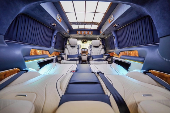奔驰圣姆峰豪华商务车不仅有着非常亮眼的外观,车身内部,配置多元、各式娱乐设施,满足用户户外需求,车身内置航空高级座椅,全程为客户的舒适所服务。