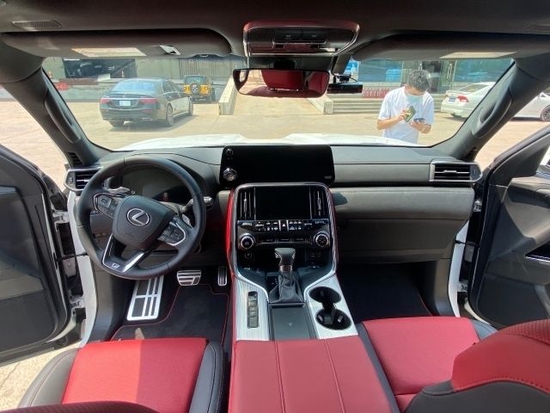 配置:F-运动版:运动包围,运动网状格栅,半苯胺皮革座椅,22寸运动轮,铝内饰,25扬声器,马克莱文森音响系统,后手动遮阳板,二排座椅通风,二排座椅加热,前性能杆,带橡胶钉铝合金踏板,托森®限滑差速器,自适应可变悬架(AVS)22款加版运动雷克萨斯LX600白/黑红,七座,无豪车税现车手续齐全随时提车